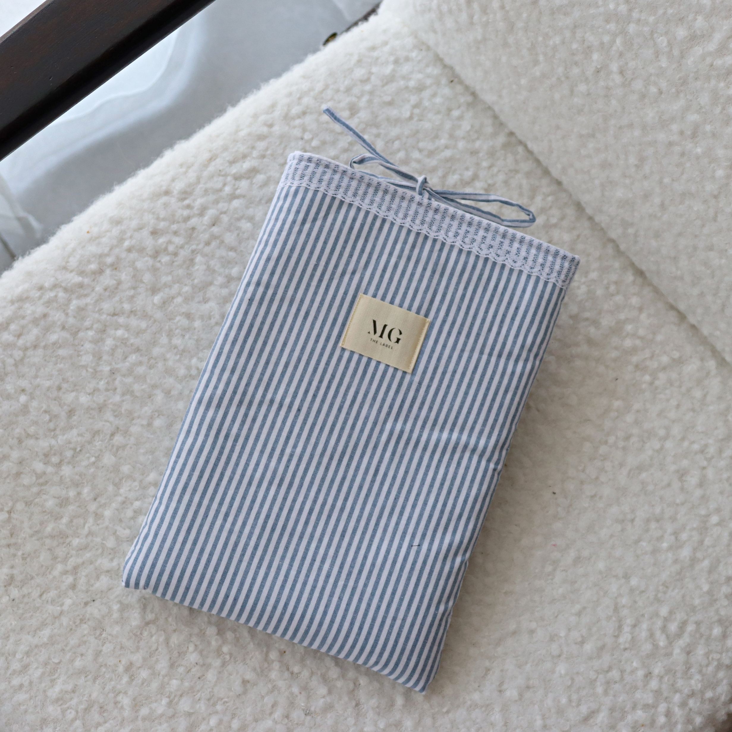 Ręcznie szyty case na książkę ze 100% bawełny i koronki.