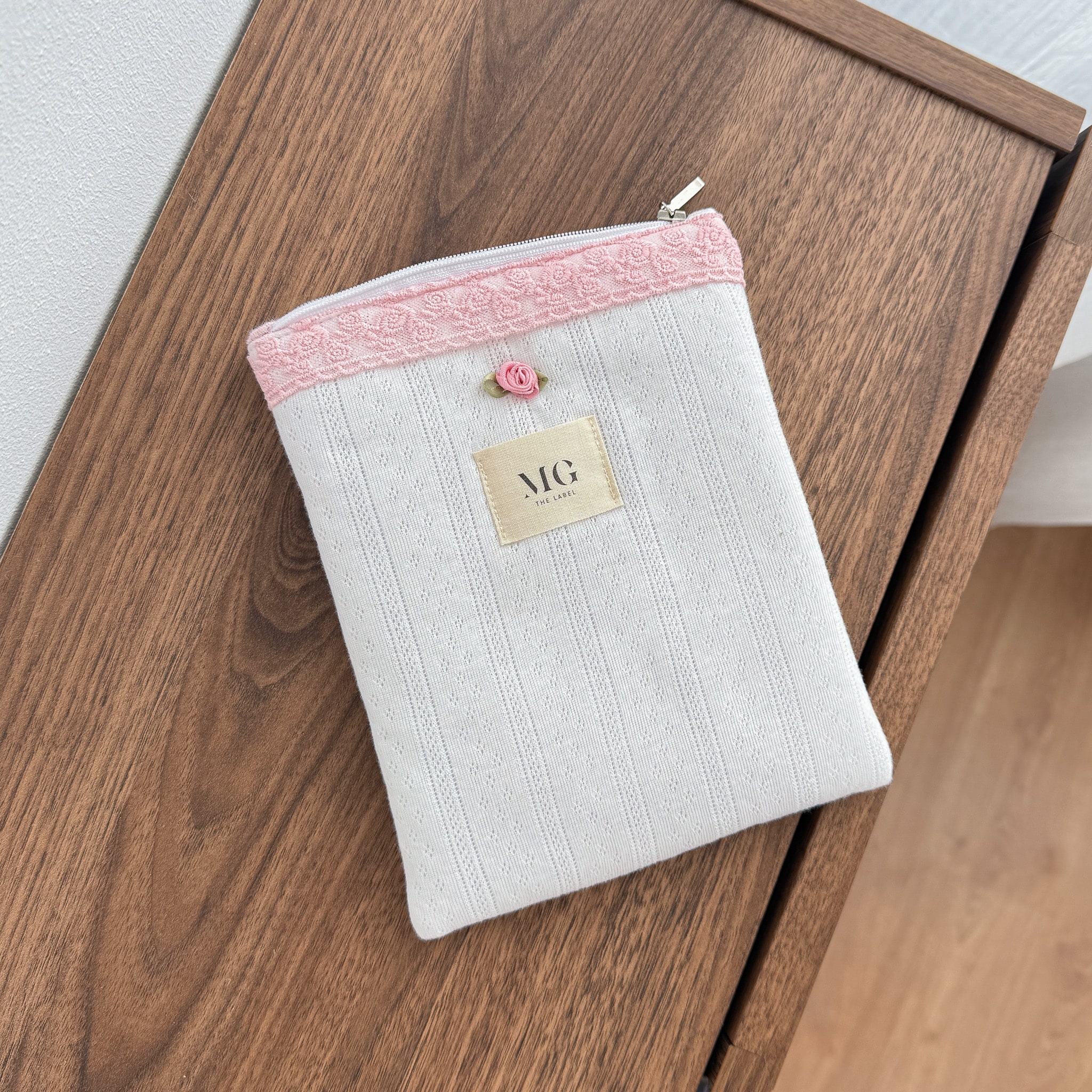 Case na czytnik ebook z kolekcji Rosie, wykonany z miękkiej ażurowej dzianiny oraz bawełnianego muślinu.