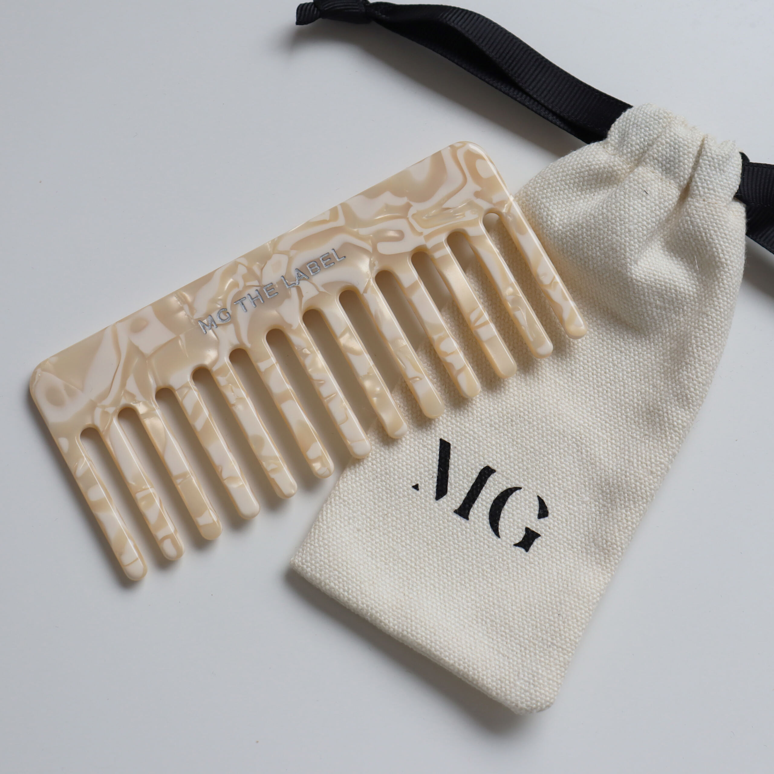 Grzebień jest w zestawie z minimalistycznym woreczkiem.