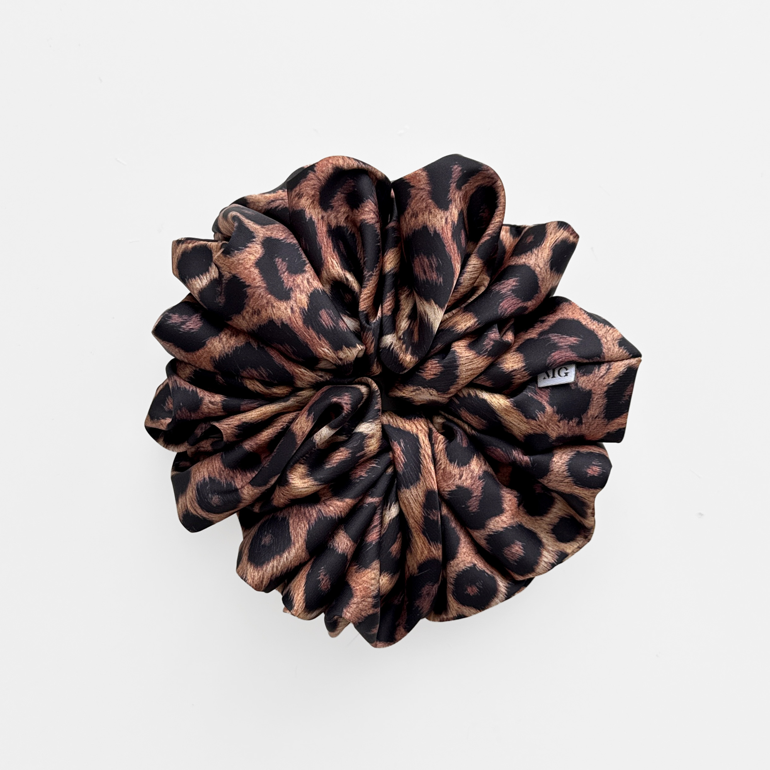 Satynowa duża scrunchie w panterkę – ręcznie szyta w Polsce