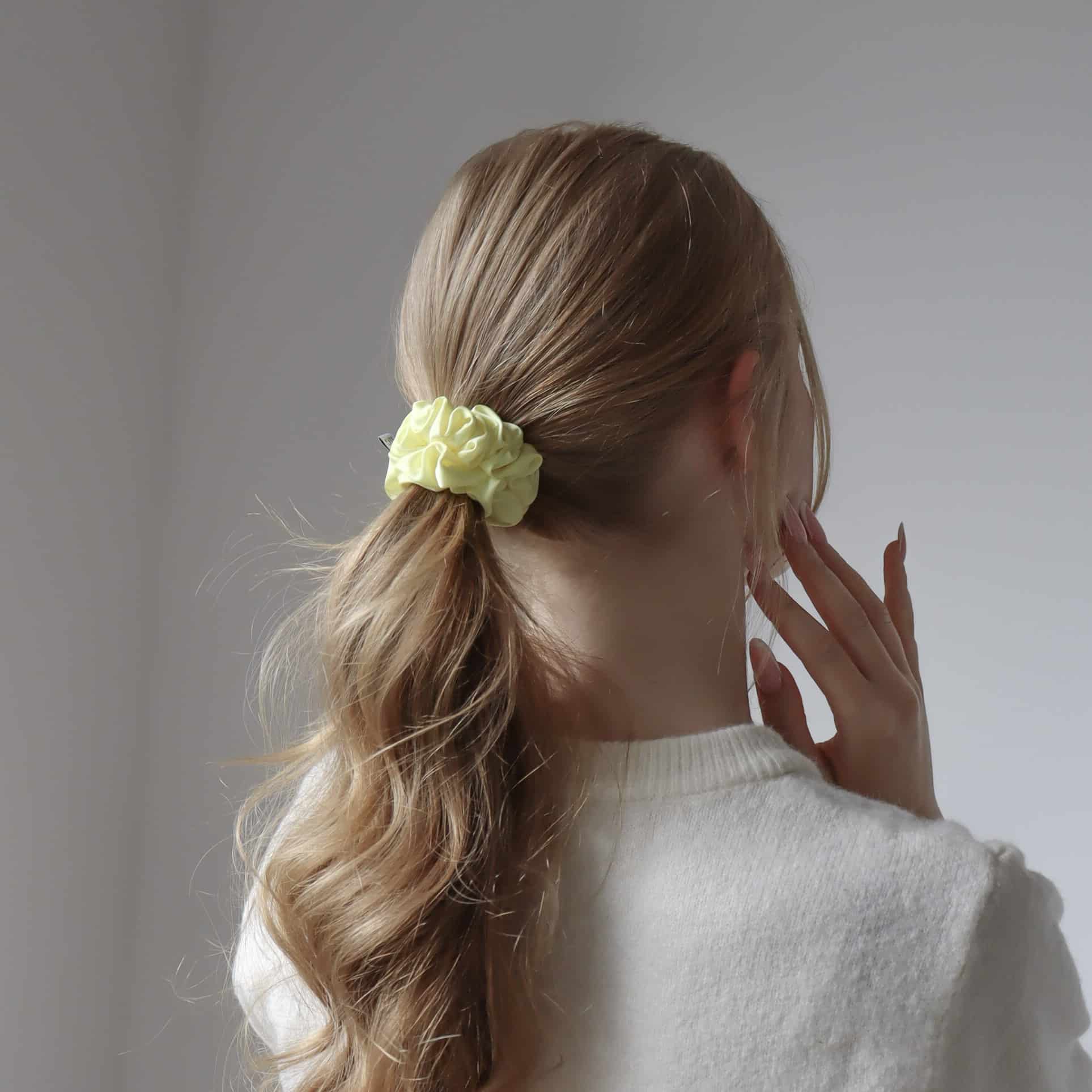 Satynowa scrunchie wykonana z najwyższej jakości jedwabistej satyny, która charakteryzuje się niezwykłą delikatnością. Dzięki swojej jedwabistości posiada pozytywny wpływ na włosy, nie szarpią ich, ani nie odciskają, jednocześnie dobrze je utrzymując.