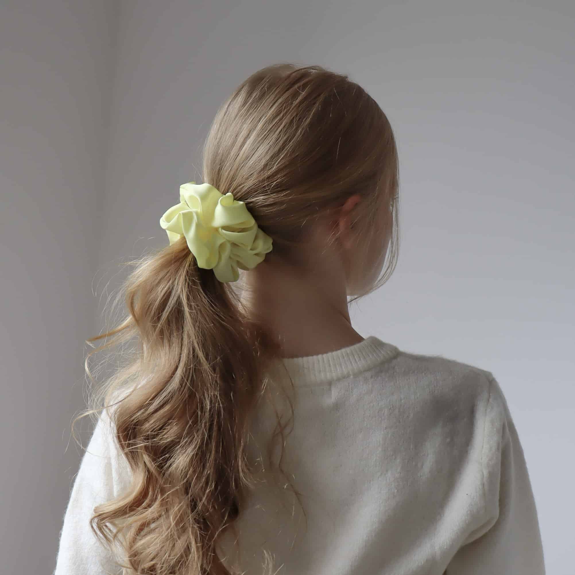 Zobacz także filmik z porównaniem rozmiarów scrunchies na włosach poniżej