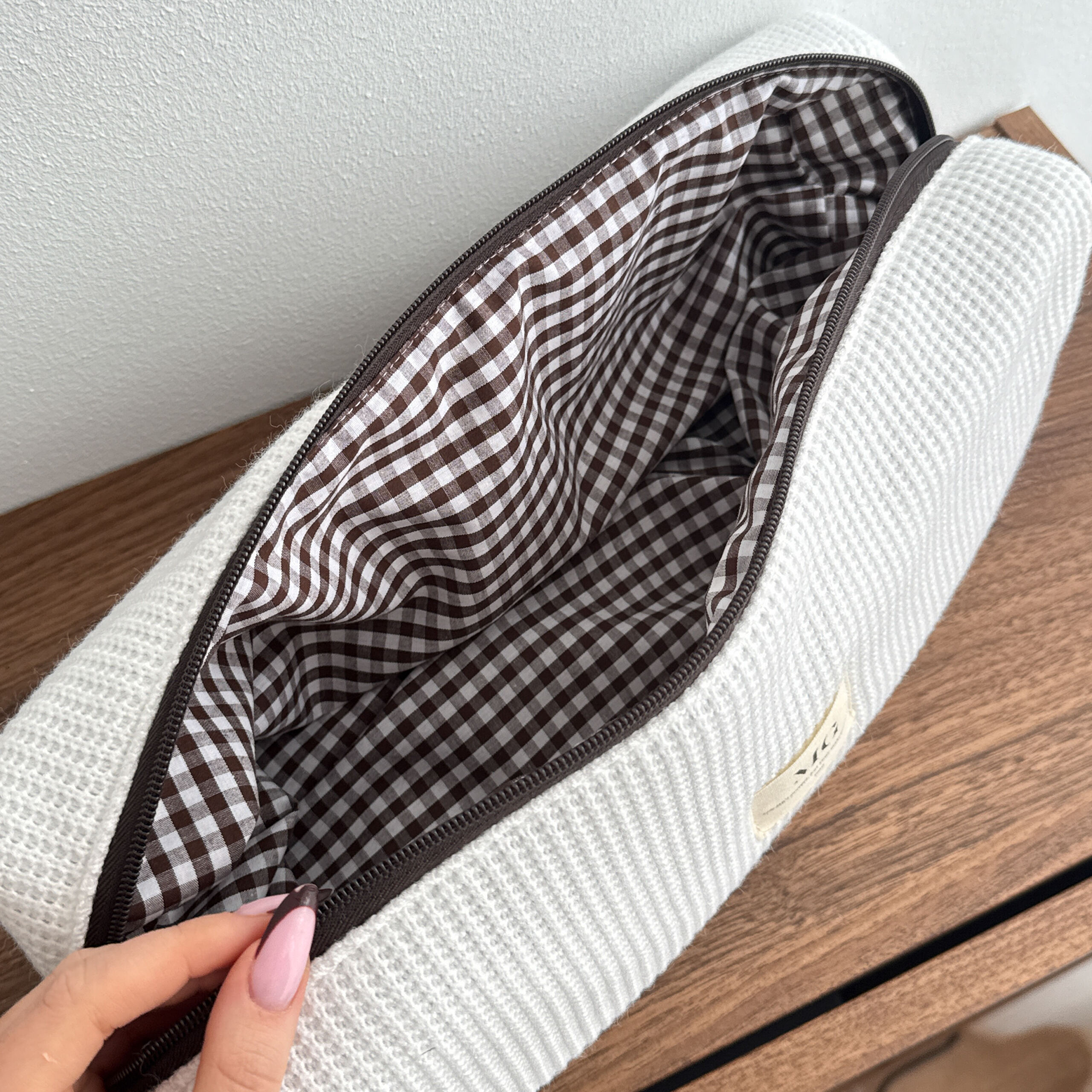 Kosmetyczka jest po prostu urocza! Śliczny kolor, a ręczne wykonanie naprawdę zasługuje na pochwałę, widać dbałość o każdy detal. Idealna na prezent lub do codziennego użytku. Zdecydowanie polecam! 🤍🧸 Jowita
