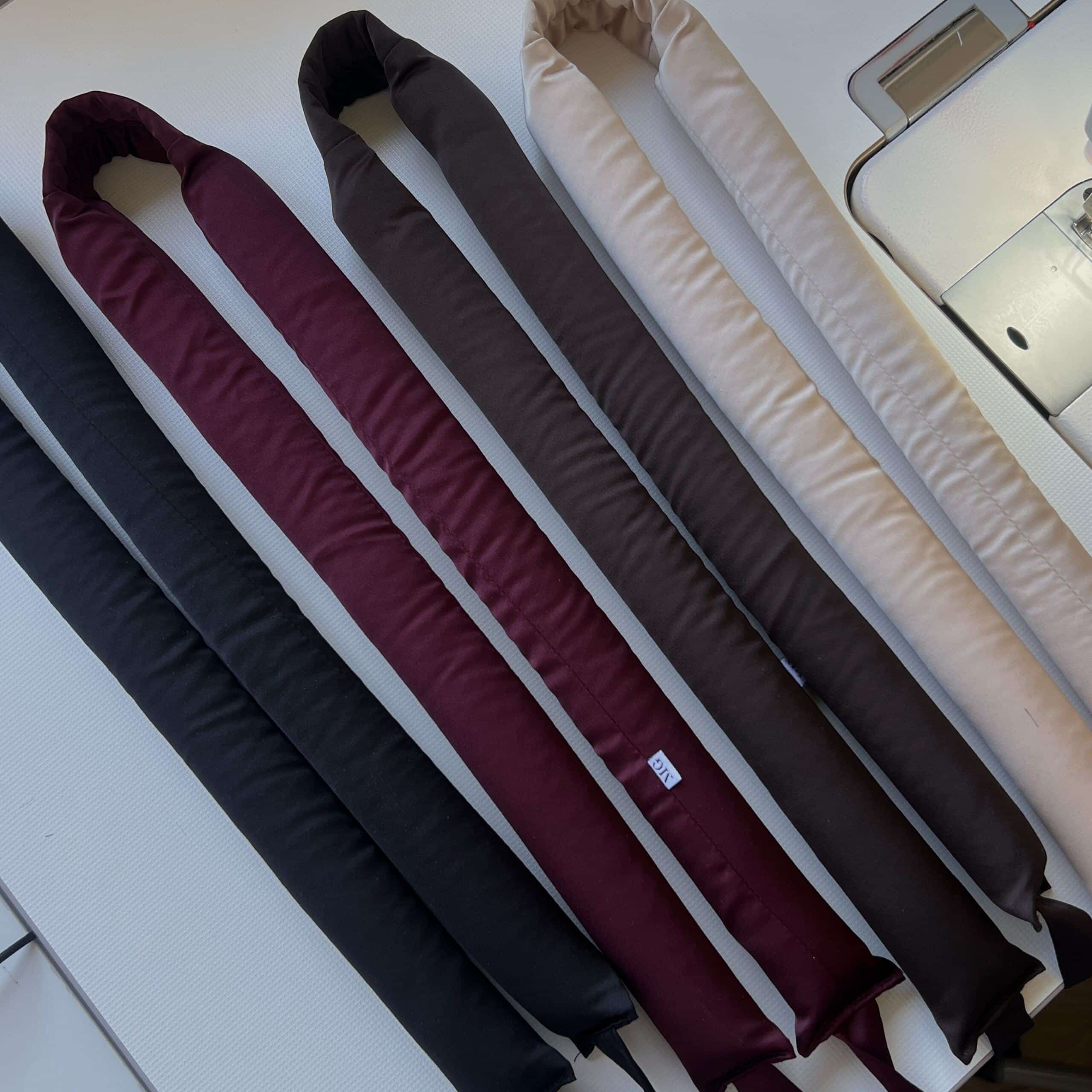 Wałek do kręcenia włosów wykonany z jedwabistej satyny. Posiadający nowe miękkie wypełnienie, które zostało stworzone specjalnie dla nas i ma właściwości memory dopasowujące się do kształtu, co umożliwia wygodnie spanie z włosami nawiniętymi na wałek.