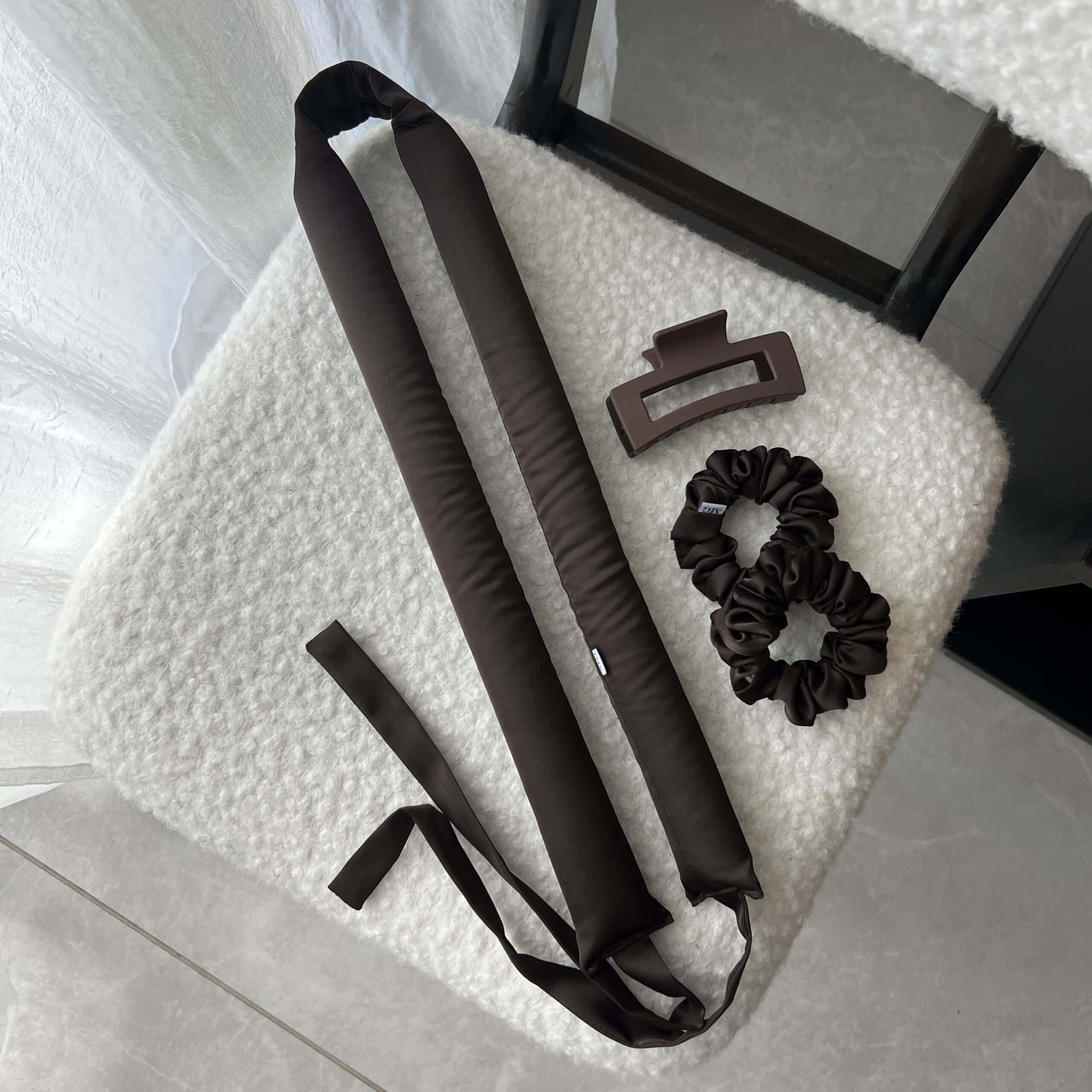 W idealnie skomponowanym zestawie z dwiema Scrunchie Slim Espresso oraz Spinką Medium Chocolate.